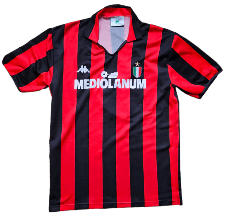 AC Milan - Italie Jaar: 1988-1989Maat: XLMerk: Kappa T/U: Thuisshirt Details: matchworn – opening Philips stadion PSV v AC Milan 11-08-1988 / details shirt Fillipe GALLI19-05-1963 – Monza – Italië181 cm – 72 kg