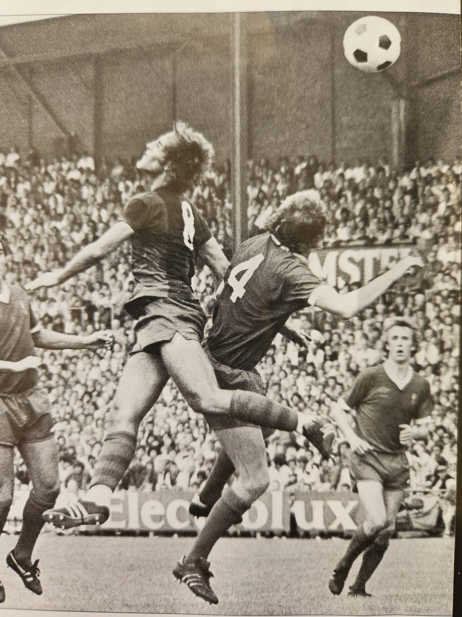 Beelden van Johan Neeskens #8 tijdens de wedstrijd AZ-Barcelona en Liverpool - Barcelona. Na de verloren wedstrijd tegen AZ overhandigde toenmalig Barcelona coach Rinus Michels het bezwete wedstrijdshirt van Neeskens, verpakt in een Spaanse krant, aan mijn vader. De typerende woorden van Michels waren: " Hier Leo, het shirt, hij speelde als een natte krant.'