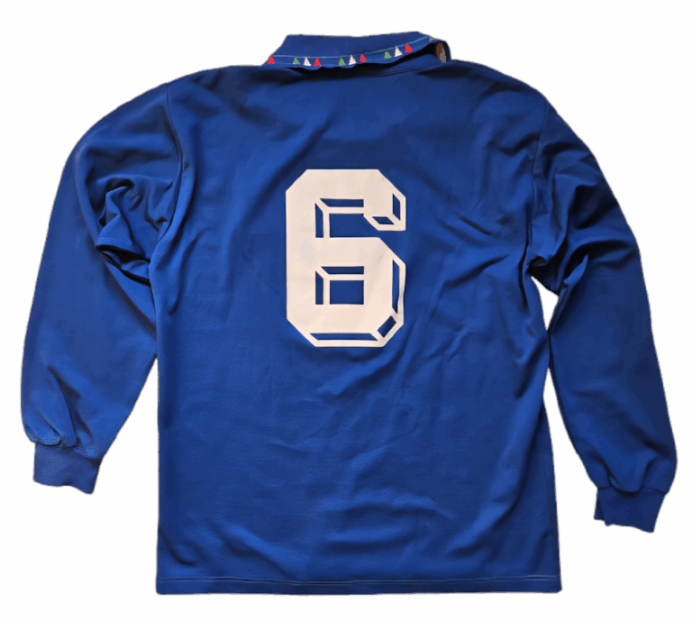 Jaar: 1991-1992Maat: LargeMerk: DiadoraT/U: ThuisshirtDetails: matchworn / vriendschappelijk Italië v Duitsland 25 maart 1992 Franco BARESI08-05-1960 – Travagliato – Italië176 cm – nnb kg82 interlands